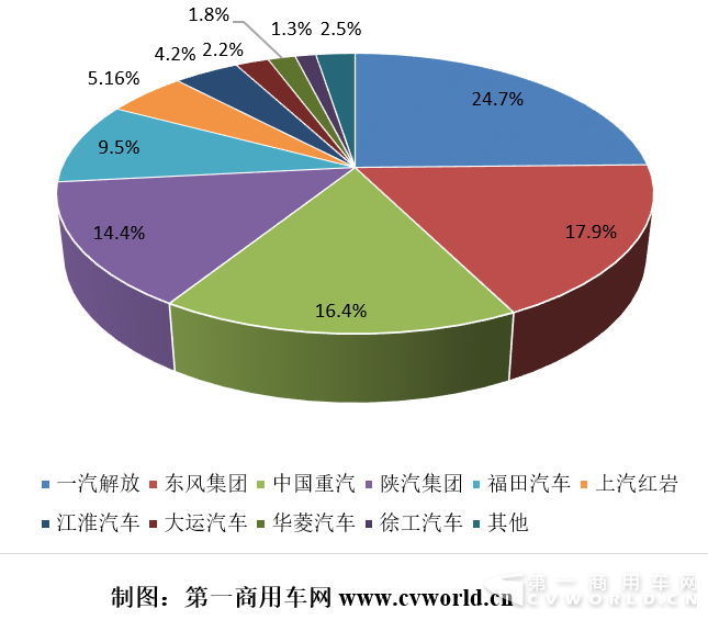 今年5月份,銷量前十的重卡企業(yè)共計(jì)銷售11.09萬輛,占到當(dāng)月重卡總銷量的97.3%,其中九家企業(yè)同比均有不同程度的增長(zhǎng);有5家企業(yè)銷量過萬,一汽解放銷售2.35萬輛,蟬聯(lián)銷量排行榜第一;東風(fēng)銷售2.2萬輛,穩(wěn)居行業(yè)第二,與解放的差距縮小到1500輛左右;重汽、陜汽分別以1.85萬輛、1.65萬輛的銷量,保持了第三和第四。