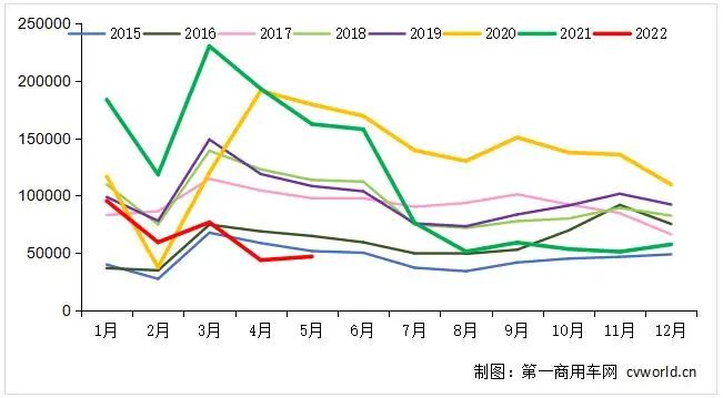 第四,上年同期基數(shù)過(guò)高,導(dǎo)致今年5月份的同比數(shù)據(jù)比較“難看”。根據(jù)中汽協(xié)會(huì)官方數(shù)據(jù),2021年5月的重卡銷(xiāo)量達(dá)到16.21萬(wàn)輛,是我國(guó)重卡市場(chǎng)5月份銷(xiāo)量的歷史第二高點(diǎn)(僅次于2020年5月份)。如此之高的同期銷(xiāo)量基數(shù),今年5月份重卡市場(chǎng)不可能不出現(xiàn)大幅下滑。